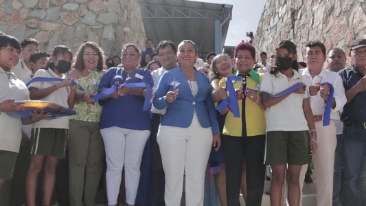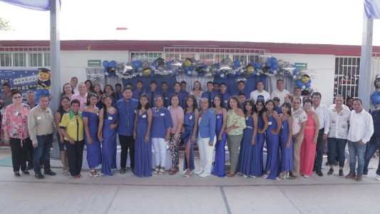Acompañada de la secretaria de Bienestar y Desarrollo Comunitario, Leticia Lozano Zavala, la presidenta municipal, quien fungió como madrina de la generación, realizó el corte de listón inaugural del comedor y las nuevas escaleras de acceso principal al plantel educativo, que tuvieron una inversión de 1 millón 200 mil pesos.