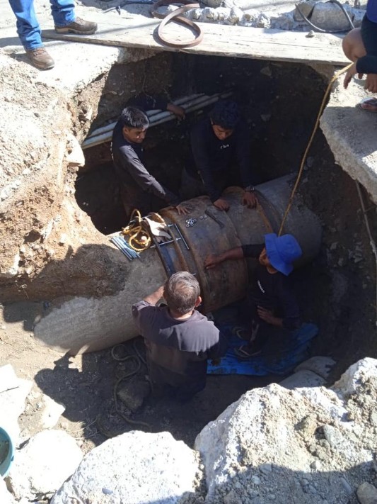 Trabajadores del área operativa, intervinieron una línea de conducción de 30 pulgadas de diámetro en la colonia Cañada de Los Amates, lograron recuperar más de 30 litros por segundo para mejorar el tandeo en las colonias del puerto.