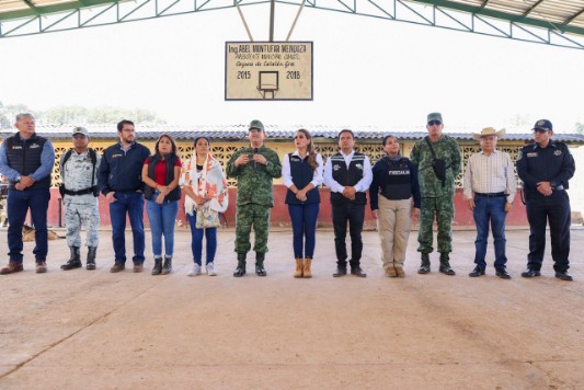 Acompañada por mandos militares, funcionarios estatales y la Fiscal General del Estado, la gobernadora Evelyn Salgado, refrendó su compromiso con esta y las comunidades de esta región en materia de seguridad con el apoyo de todas las fuerzas del orden a través de la presencia permanente de las instituciones de manera coordinada.