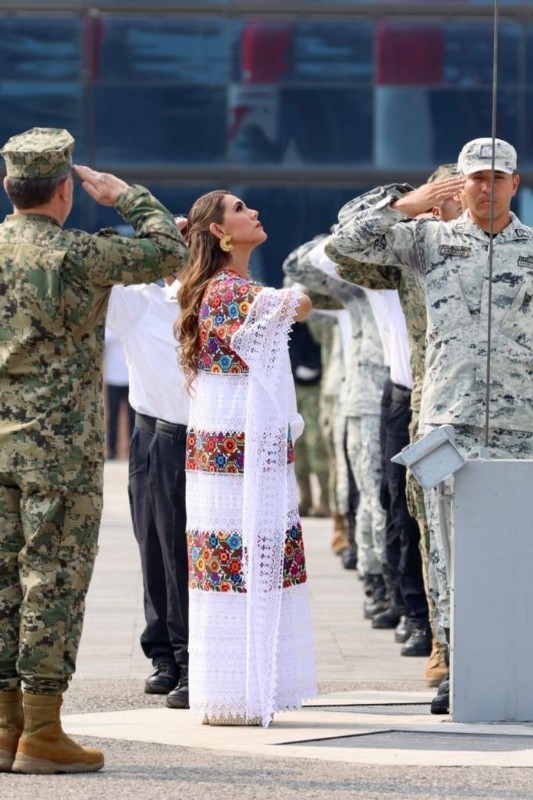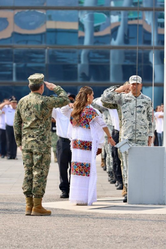 Preside gobernadora ceremonia de Izamiento de Bandera correspondiente al mes de mayo en la Casa del Pueblo en Chilpancingo