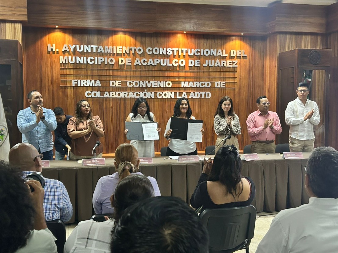 Acapulco, Gro., 12 de mayo de 2025.- Con el compromiso de mejorar la atención y simplificar los trámites en beneficio de las y los acapulqueños, la Presidenta Municipal, Abelina López Rodríguez, encabezó la firma de un convenio con la Agencia de Transformación Digital y Telecomunicaciones.