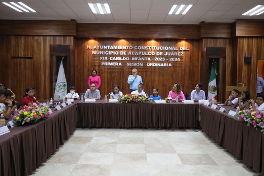 Acapulco, Gro., 26 de junio de 2023.- Para fomentar la participación de niñas y niños en la vida política del municipio, el Gobierno de Acapulco que encabeza, la presidenta, Abelina López Rodríguez, a través de la dirección de Fomento Educativo, realizó la primera sesión ordinaria del Décimo Noveno Cabildo Infantil 2023- 2024.