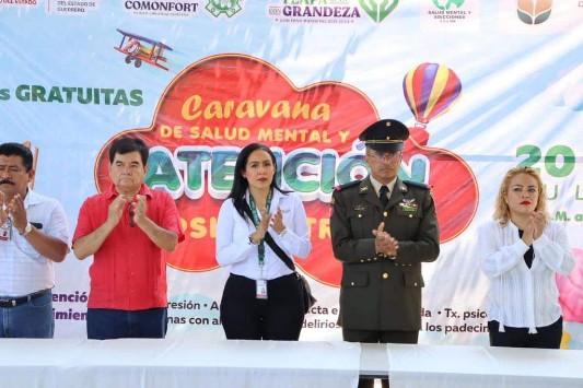 Esta caravana tiene el objetivo de brindar atención psicológica y psiquiátrica gratuita y oportuna a la población que lo requiera, y tiene lugar en la explanada de la escuela primaria "Luis Donaldo Colosio".