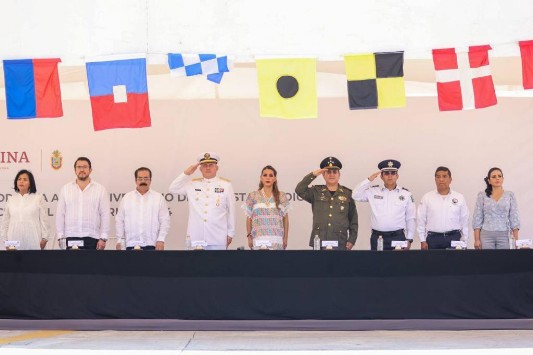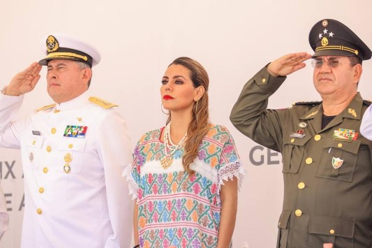 En el acto realizado en la explanada de las instalaciones de la Décima Octava Región Naval, la gobernadora expresó su reconocimiento al Ejército, la Guardia Nacional, las policías estatales y municipales, así como todas las instituciones, que desde sus diferentes trincheras trabajan de manera incansable, con valentía, transparencia y honestidad.