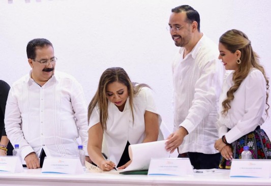 La gobernadora atestiguó la firma de la declaratoria de compromiso del Nuevo Código Modelo de Ética de la Justicia Electoral Mexicana entre el Tribunal Electoral del Estado con la Sala Superior del Tribunal Electoral del Poder Judicial de la Federación.