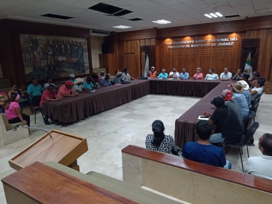 En la Sala de Cabildo Juan R. Escudero, las autoridades escucharon las solicitudes de las y los representantes, encabezados por el presidente del comisariado de los Bienes Comunales de Cacahuatepec, Efraín Dorantes Velez.