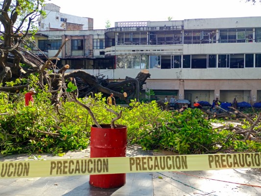 Pese a la caída del árbol, la Dirección de Panteones y Velatorios del municipio, ubicada en el antiguo Ayuntamiento de Acapulco, realiza sus actividades con normalidad.