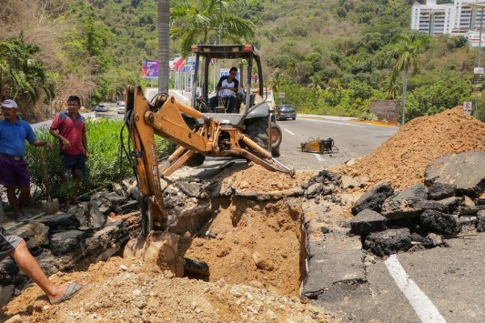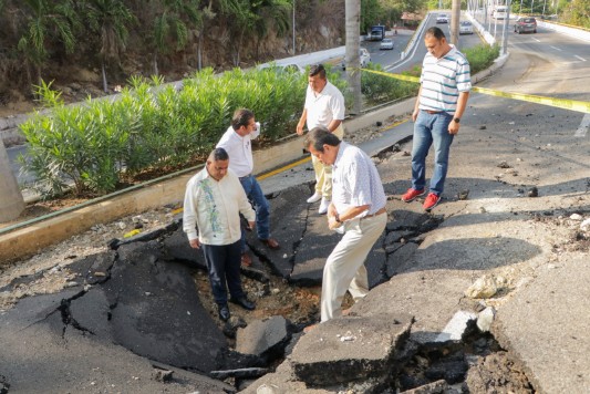 Lozano Hernández, supervisó los trabajos que se realizan e informó que se espera concluir en el transcurso de la tarde, ya que trabajan de manera conjunta con la Comisión de Infraestructura, Carretera y Aeroportuaria del Estado de Guerrero (CICAEG) para la colocación de asfalto. En tanto se recomienda a la población transitar con precaución sobre la avenida y mantenerse informados a través de la pagina oficial de la dependencia
