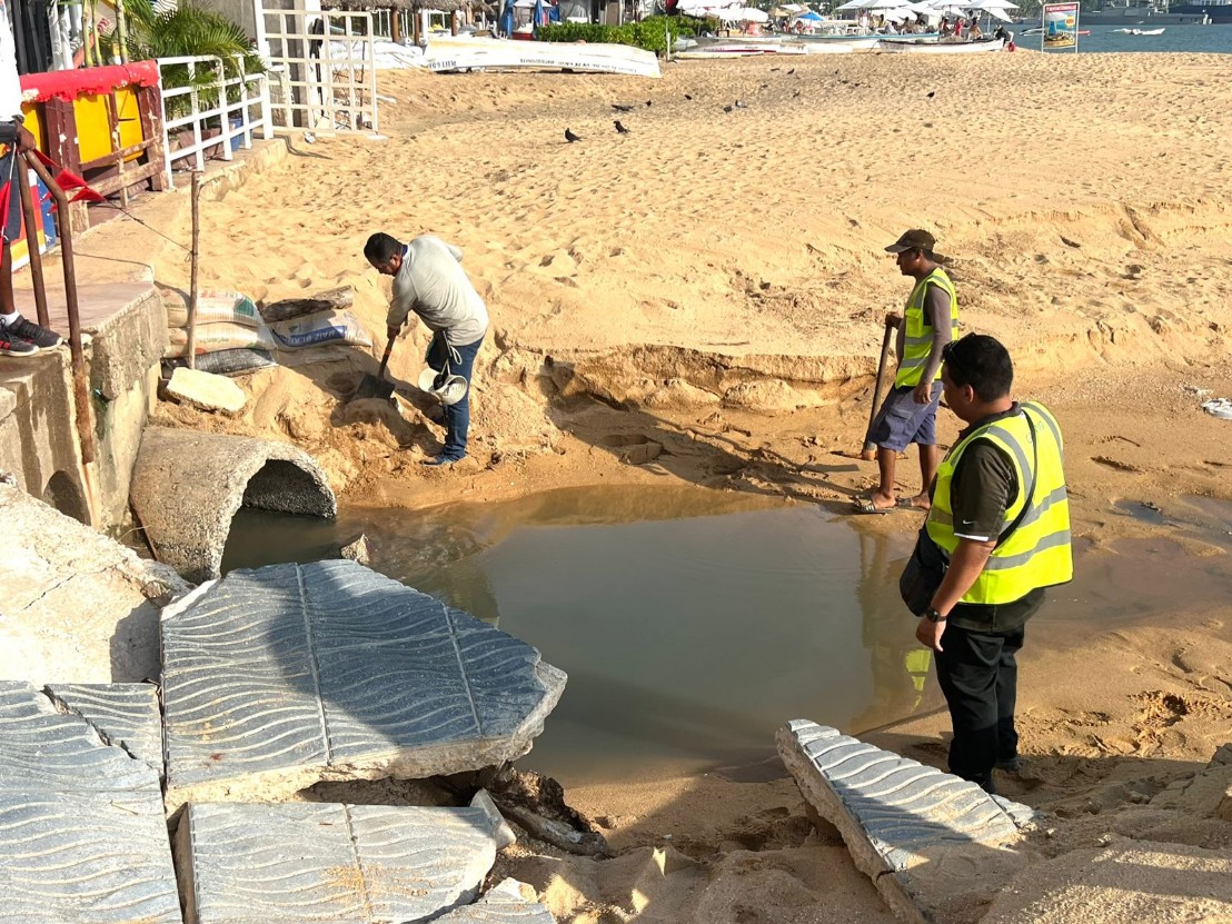 Acapulco, Gro., 21 de julio de 2025.- Tras la intensa lluvia registrada durante la madrugada de este lunes en el puerto, personal operativo de la Comisión de Agua Potable y Alcantarillado del Municipio de Acapulco (CAPAMA) encabezó un recorrido de supervisión por los principales canales pluviales que desembocan en la bahía, particularmente en la zona de Icacos, donde se reportó el estancamiento de aguas que descendieron de manera natural desde las partes altas de la ciudad.