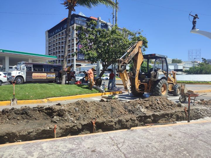 *Acapulco, Gro., 02 de marzo de 2023.*- Personal de la Comisión de Agua Potable y Alcantarillado del Municipio de Acapulco (CAPAMA), trabaja en la reparación de una fuga residual en la Costera Miguel Alemán, a la altura de la glorieta de La Diana Cazadora.