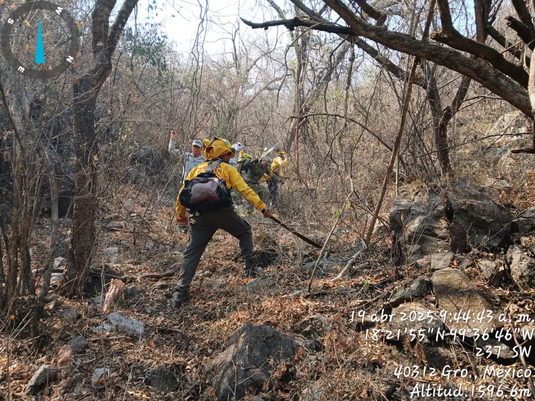Chilpancingo, Gro., 19 de abril de 2025.- El Gobierno del Estado de Guerrero, en coordinación con autoridades municipales y federales, realiza mantiene un despliegue operativo con más de 116 elementos especializados para combatir el incendio forestal en la zona del Cerro Grande, en el municipio de Iguala, en la región Norte.