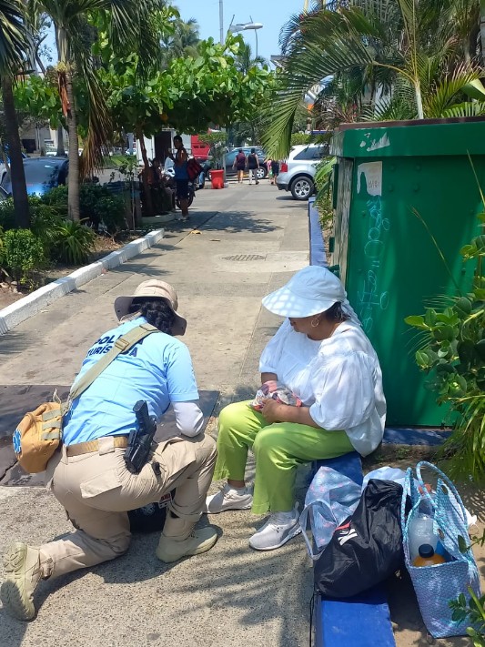 Acapulco, Gro., 24 abril de 2023.- Personal de la Policía Turística, dependiente de la Secretaría de Seguridad Pública (SSP), brindó 34 atenciones a turistas durante el fin de semana, a través de las divisiones de Urgencias Médicas, Asistencia Turística y Rescate Marino.