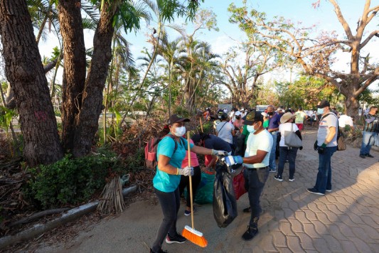 En esta ocasión, fueron más de 800 las personas que llegaron para ayudar y apoyar las labores que se están convocando desde la administración que encabeza la gobernadora Evelyn Salgado Pineda, para que cada domingo a partir de las 7 de la mañana la sociedad civil participe en la rehabilitación del parque, tras las afectaciones provocadas por el huracán Otis.