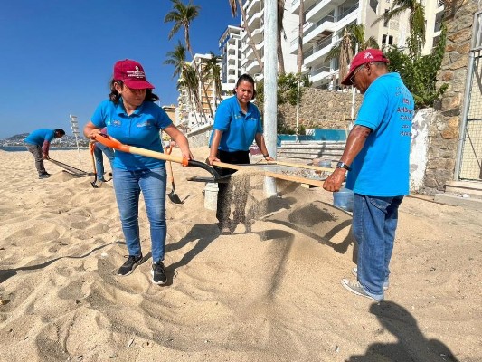 A través de la Dirección de Ecología y Protección al Medio Ambiente, se realiza de manera permanente la limpieza de la franja de arena; a la fecha se han retirado 18 toneladas de residuos sólidos con el cribado fino del tramo que comprende de la playa Papagayo a Icacos, en su mayoría, restos de vidrio, envases y partículas, estos materiales representa el 60 por ciento de los desechos.