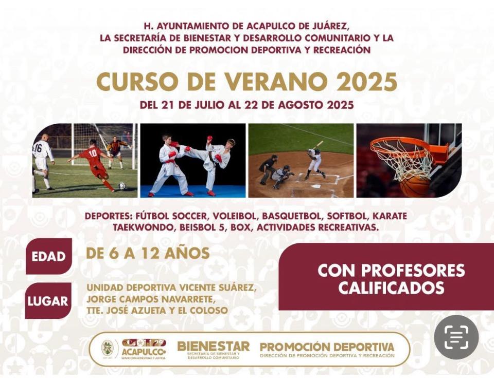 El Gobierno Municipal que encabeza Abelina López Rodríguez a través de la dirección de Promoción Deportiva y Recreación invita las y los pequeños a los cursos de verano en unidades deportivas, del 21 de julio al 22 de agosto.