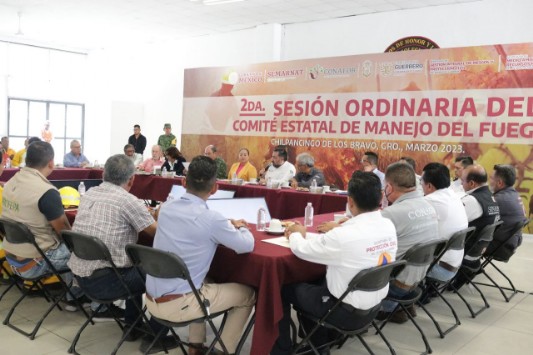 En las instalaciones del 6to Batallón de Infantería, en la ciudad de Chilpancingo, se realizó la Segunda Sesión Ordinaria del Comité Estatal de Manejo de Fuego, donde además se presentó el informe de la temporada de incendios 2022 y la situación actual de la temporada de incendios 2023, por parte de la titular de la Promotoría de Desarrollo Forestal de la CONAFOR en Guerrero, Guadalupe Rivas Pérez.
