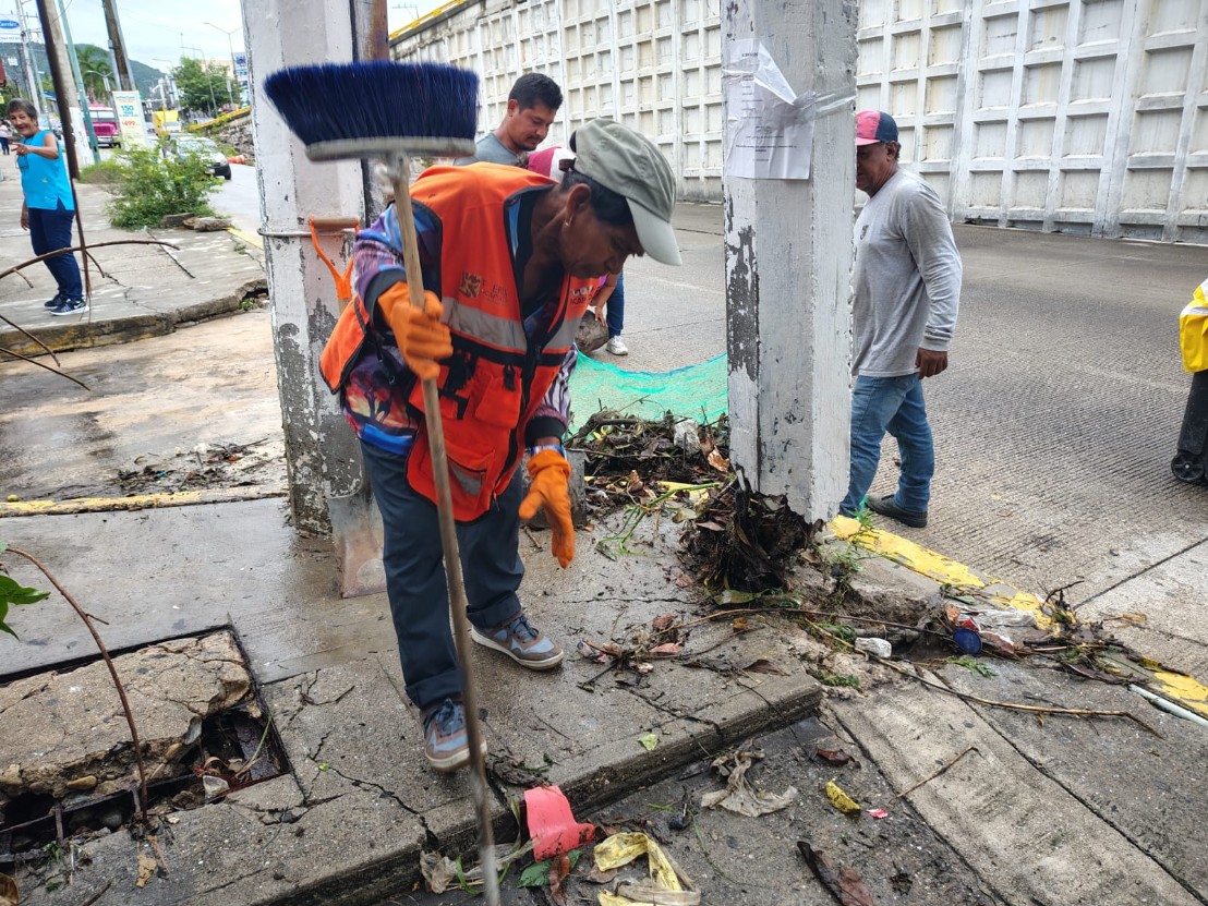 Asimismo, se realizaron trabajos de limpieza y recolección en avenida Ruiz Cortines, Pie de la Cuesta, bulevar Vicente Guerrero, tramo carretero Cayaco–Cruces, Cayaco–Puerto Marqués, Sinfonía del Mar y el Zócalo de la ciudad, los cuales quedaron repletos de basura a consecuencia del temporal.