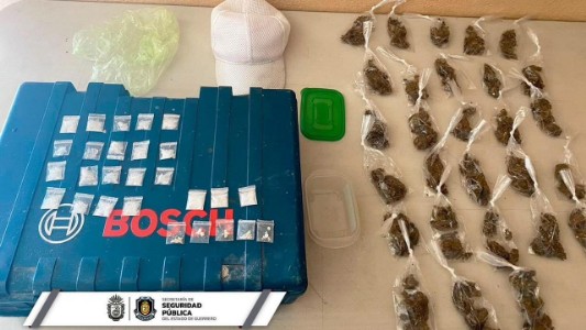 Así como 28 bolsitas de plástico transparente, con hierba verde en su interior, similar a la marihuana; cinco dosis de una sustancia sólida y blanca, aparentemente piedra; tres dosis de polvo blanco, con características de la cocaína.