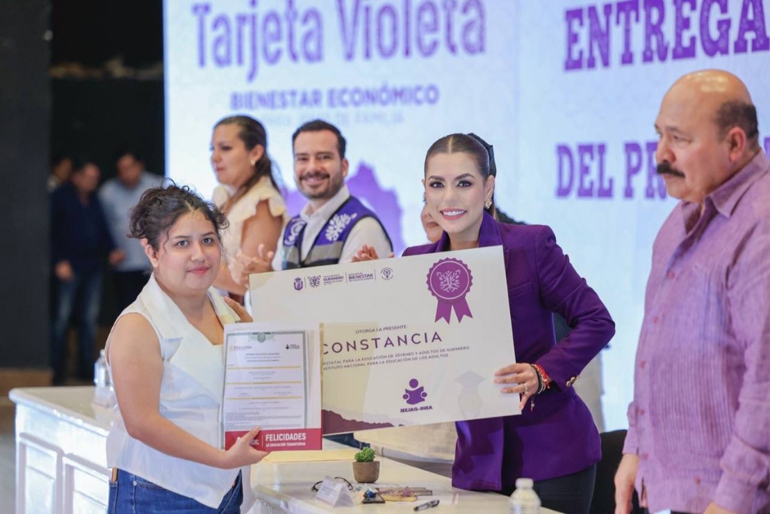 Acapulco, Gro., 8 de diciembre de 2025.- "Detrás de cada número está la historia de una mujer que decidió cambiar su vida; son mujeres que hoy dominan oficios que antes se creían que nada más eran para los hombres, mujeres que se prepararon para ser emprendedoras, mujeres que se prepararon para trabajar, para sostener a sus familias con independencia, con inteligencia, con libertad, mujeres que decidieron abrir sus alas", señaló la gobernadora Evelyn Salgado Pineda ante poco más de 4 mil mujeres que recibieron su constancia del programa Tarjeta Violeta.