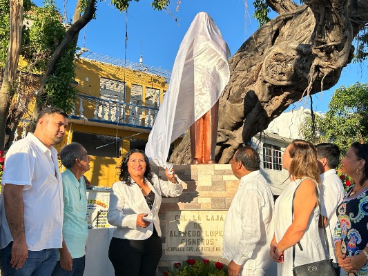 Acapulco, Gro., 06 de enero de 2024.- En el marco de la conmemoración del 66 aniversario de la fundación de la colonia La Laja, la Presidenta Municipal, Abelina López Rodríguez, develó la restauración del monumento en honor al luchador social Alfredo López Cisneros, situado en la glorieta del Polideportivo de La Laja.