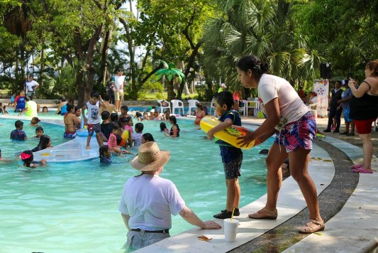 El director del Parque Papagayo, Abel Luvio Villanueva y el presidente de la Asociación Padres Unidos por el Autismo en Guerrero A.C., Roberto Basilio, pusieron en marcha este jueves la iniciativa "Chapotea", que consiste en que jóvenes, niños y niñas jueguen y se diviertan en la alberca de manera gratuita.
