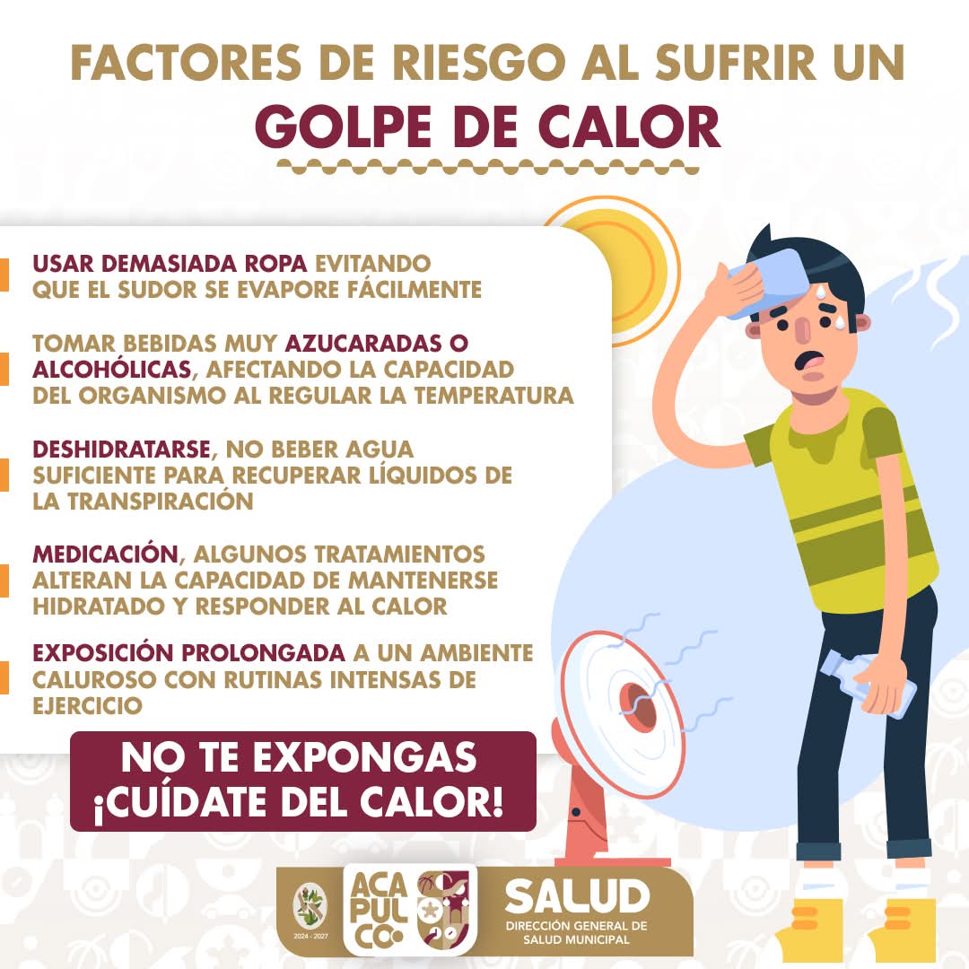Acapulco, Gro., 15 de julio de 2025.- Ante las altas temperaturas que se registran en Acapulco, el Gobierno Municipal que preside Abelina López Rodríguez a través de la Dirección General de Salud llama a la población a tomar precauciones para evitar golpes de calor.