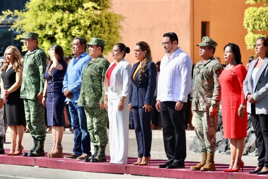*¡No estás sola! ¡No estás sola! Manifiestan apoyo a gobernadora en ceremonia cívica en Chilpancingo