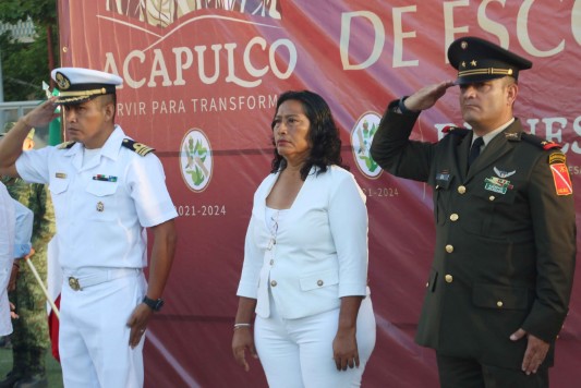 Acapulco, Gro., 24 de febrero de 2023.- La presidenta municipal, Abelina López Rodríguez, encabezó la conmemoración por el Día de la Bandera Nacional y el abanderamiento a escoltas de escuelas de diferentes niveles educativos en la ciudad.