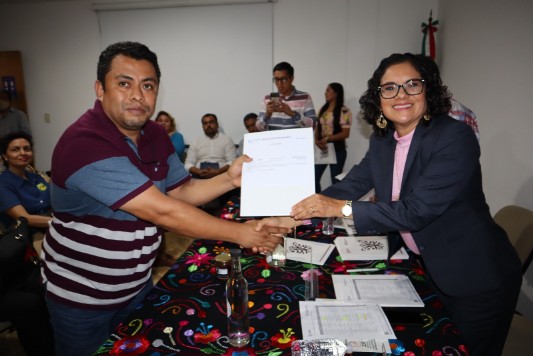 La entrega se realizó en la sala de juntas de la dependencia, donde Ramírez Vega expresó que en la administración de la gobernadora Evelyn Salgado Pineda se están impulsando acciones y programas para la protección de productos y servicios, además de fortalecer la competitividad en los procesos productivos de las MiPYMES de Guerrero.