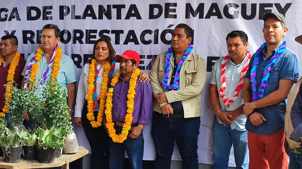 En el evento Valente Pérez puntualizó que, a través de la reforestación con maguey, se fomenta la producción sustentable de mezcal y se cumple con la doble finalidad de cuidado ambiental porque en esta entrega también se incluyeron árboles de guamúchil y roble rosa que servirán para reforestar en zonas específicas de los pueblos.