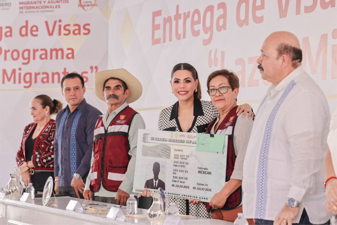 Taxco de Alarcón, Gro., 8 de julio de 2025.– Ante la majestuosa Parroquia de Santa Prisca, símbolo del Pueblo Mágico de Taxco, la gobernadora Evelyn Salgado Pineda encabezó la entrega de visas a 139 hombres y mujeres de ocho municipios de la región Norte de Guerrero, como parte del programa "Lazos Migrantes", que permite a familias separadas reencontrarse en Estados Unidos.