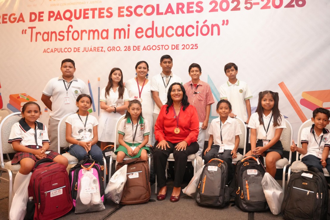 Acapulco, Gro., 28 de agosto de 2025.- La presidenta municipal, Abelina López Rodríguez, encabezó la entrega de paquetes escolares del programa Transforma mi Educación, un apoyo que benefició a 876 niñas y niños con útiles, uniformes y calzado nuevos para iniciar el ciclo escolar con mejores condiciones y motivación para su aprendizaje.