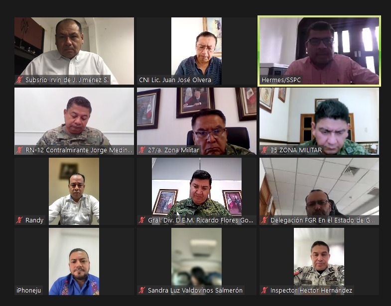 Chilpancingo, Gro. 2 de mayo del 2023. - En sesión virtual, integrantes de la Mesa de Coordinación para la Construcción de la Paz en Guerrero, dieron seguimiento a los operativos desplegados en las ocho regiones de la entidad y evaluaron los resultados del fin de semana largo con motivo del 1 de Mayo, donde se recibieron más de 110 mil visitantes en los destinos turísticos del estado que dejaron una derrama económica de 696 millones de pesos.