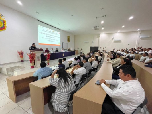 Chilpancingo, Guerrero; 03 de julio de 2023.- El secretario de Seguridad Pública Estatal, Evelio Méndez Gómez entregó este lunes constancias a las y los trabajadores de esta Secretaría que concluyeron con éxito los cursos de capacitación impartidos por la Universidad Autónoma de Guerrero (UAGro) y que forman parte del fortalecimiento en la profesionalización del personal administrativo y operativo.