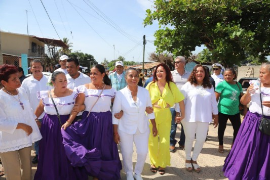 Inaugura Abelina López Rodríguez la construcción del techado de una escuela en La Providencia