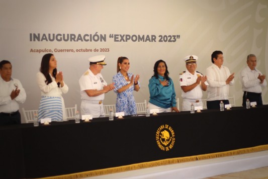 Acapulco, Gro., 13 de octubre de 2023.- La Presidenta Municipal, Abelina López Rodríguez, en compañía de la Gobernadora del Estado, Evelyn Salgado Pineda y de mandos militares y navales, inauguraron la muestra "EXPOMAR 2023", montada por la Secretaría de Marina Armada de México, la cual estará abierta al público del 13 al 22 de octubre en la Terminal Marítima de Acapulco.