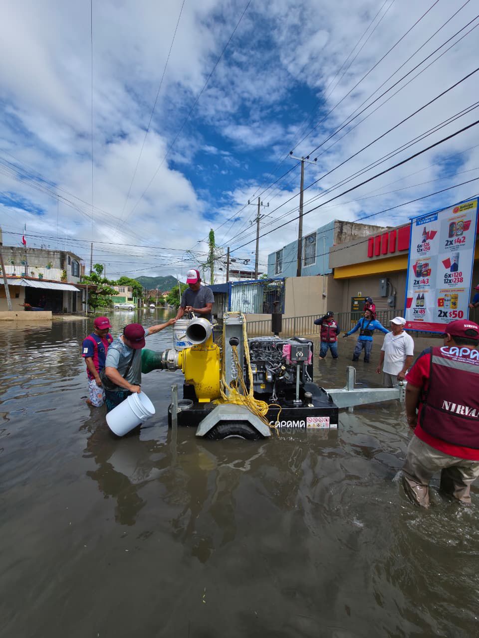 Asimismo, el organismo instaló bombas de achique en la unidad habitacional Luis Donaldo Colosio y en el fraccionamiento Misión del Mar, con el propósito de desalojar el agua estancada y reducir el nivel de anegaciones en calles y accesos principales.