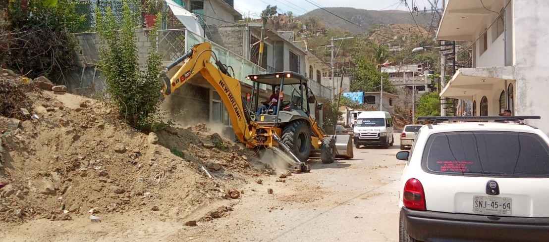 El director de Maquinaria Pesada y Parque Vehicular, Alfredo García Vázquez informó que cuadrillas de la dependencia realizan trabajos de bacheo en la carretera nacional Acapulco – Zihuatanejo, a la altura de la colonia Ex Campo de Tiro, donde también se retira escombro, específicamente en la calle Pez Vela.