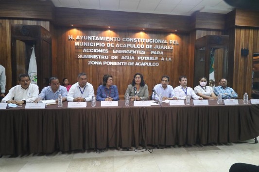 Acapulco, Gro., 13 de abril del 2023.- Para mejorar el abastecimiento de agua en la zona Poniente de la ciudad, el Gobierno Municipal, a través de la Comisión de Agua Potable y Alcantarillado del Municipio de Acapulco (CAPAMA), invertirá 18.5 millones de pesos, informó en conferencia de prensa la alcaldesa, Abelina López Rodríguez, y el director de la paramunicipal, Héctor Alejandro Juárez Amador.