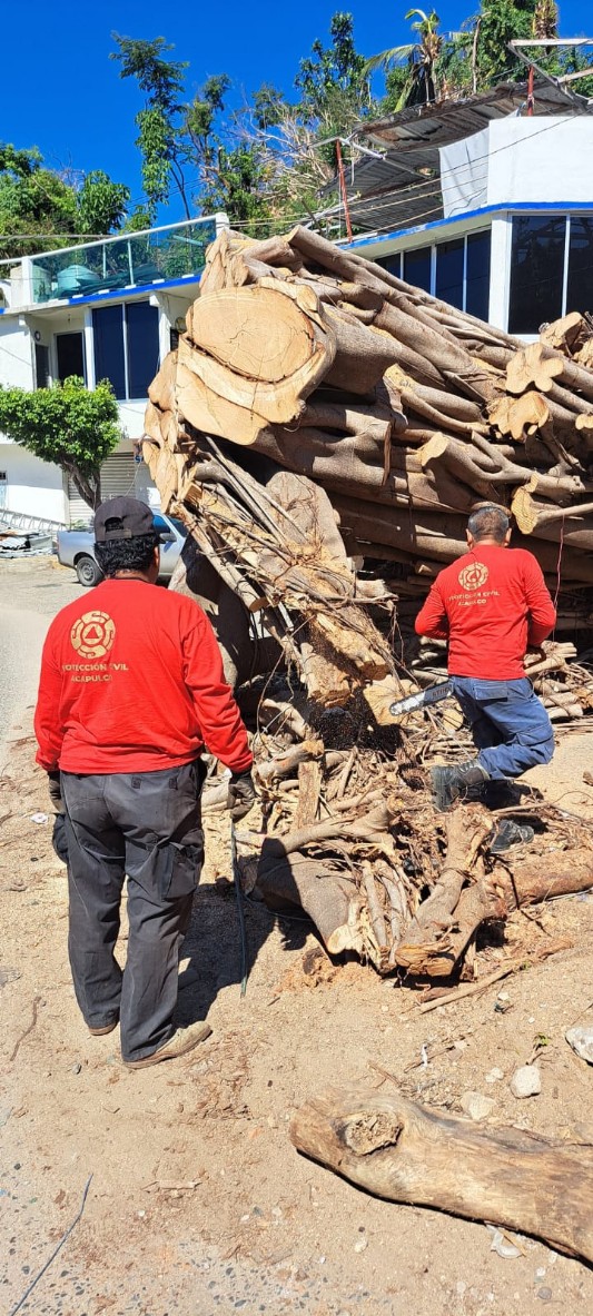 Acapulco, Gro., 02 de Enero de 2024.- Con el objetivo de mejorar la vialidad de las calles de la ciudad y mantener su fluidez, el Gobierno Municipal que encabeza Abelina López Rodríguez, realiza el retiro de árboles caídos.