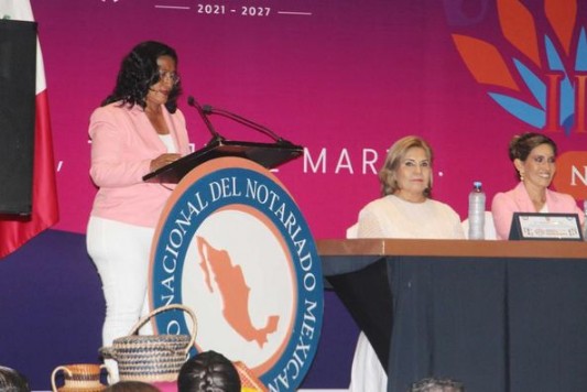 Durante su mensaje, Abelina López, calificó como trascendente la función del notariado, reconoció su ejercicio profesional y el apoyo que brindan a la sociedad y a las autoridades. Agradeció también formar parte de la jornada que busca la igualdad entre mujeres y hombres.