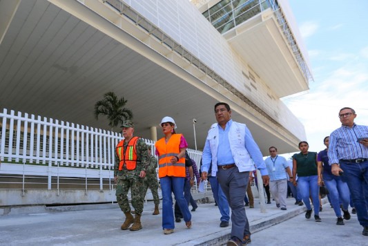 Acompañaron a la gobernadora el comandante de la 12 Región Naval, Alfredo Hernández Suárez; el secretario de Seguridad Pública Estatal, Evelio Méndez Gómez; el secretario del Consejo de Salubridad General, Marcos Cantero Cortés, entre otros.