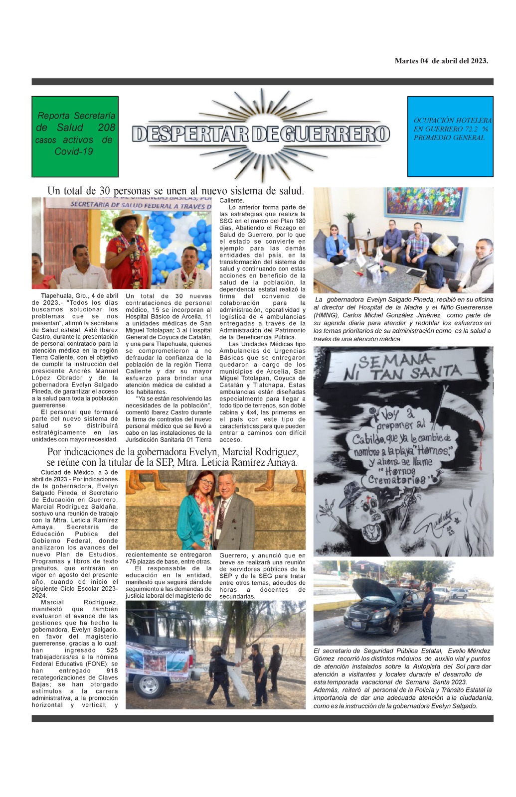 Marcial Rodríguez, manifestó que también evaluaron el avance de las gestiones que ha hecho la gobernadora, Evelyn Salgado, en favor del magisterio guerrerense, gracias a lo cual: han ingresado 525 trabajadoras/es a la nómina Federal Educativa (FONE); se han entregado 918 recategorizaciones de Claves Bajas; se han otorgado estímulos a la carrera administrativa, a la promoción horizontal y vertical; y recientemente se entregaron 476 plazas de base, entre otras.