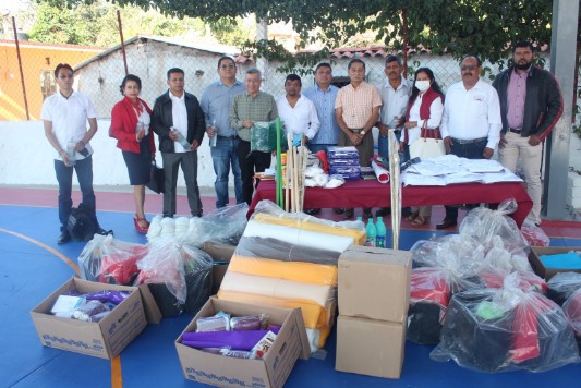 El responsable de la educación en la entidad, entregó a las y los Directores material desinfectante, de aseo, de oficina, cívico y deportivo.
