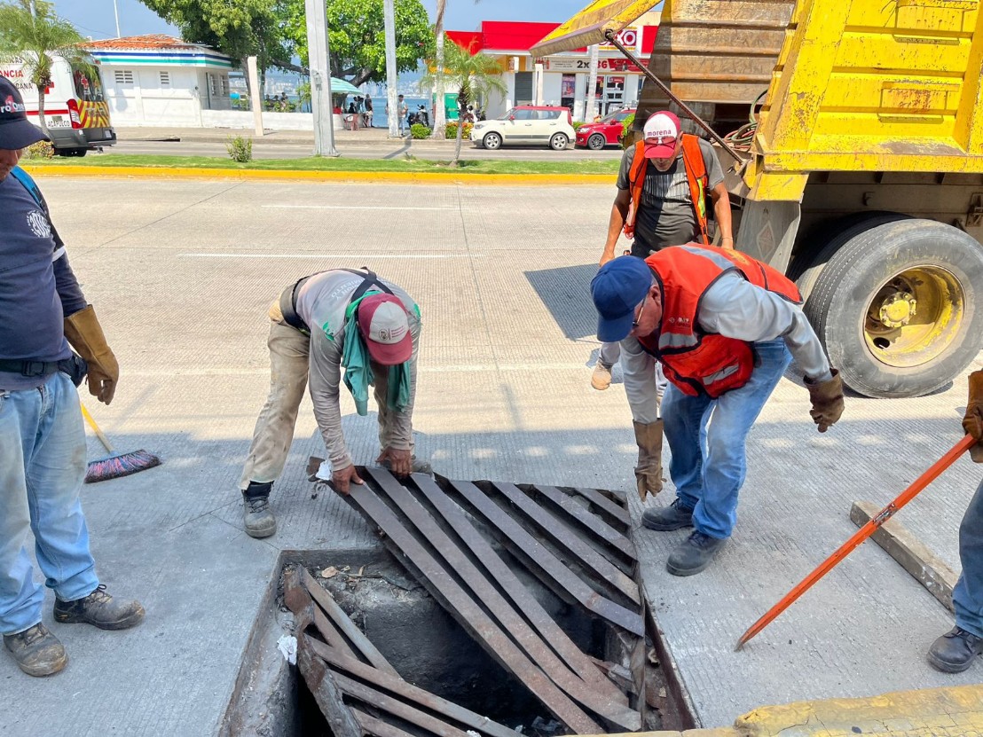 También realizaron labores de desazolve de 31 metros cúbicos de material acumulado en rejillas lo que permite un mejor flujo de agua pluvial y reduce riesgos de encharcamiento e inundaciones en Calzada Pie de la Cuesta, colonia Ejido, Navidad en Llano Largo y en la colonia Emiliano Zapata.