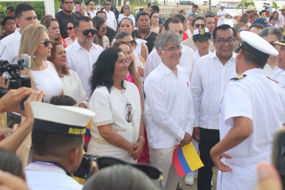 En compañía del capitán del navío, Fernando Lara, del embajador de Colombia en México, Carlos García Manosalva; del secretario de Turismo de Guerrero, Simón Quiñones Orozco, de diplomáticos y regidores, la presidenta recorrió las instalaciones y manifestó su satisfacción por recibir a los estudiantes y a toda la tripulación.