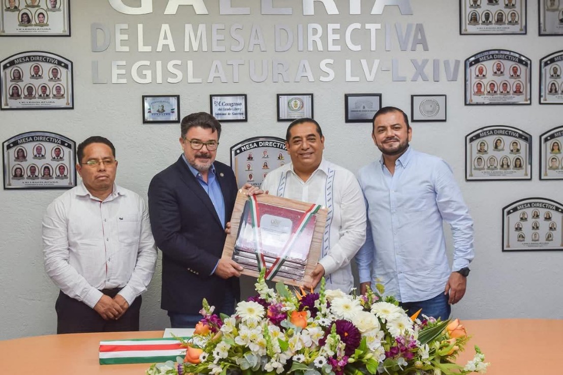 Chilpancingo, Gro., 31 de agosto de 2025.- Previo al inicio del Segundo Año de la LXIV Legislatura al Congreso del Estado de Guerrero, el presidente electo de la Mesa Directiva, diputado Alejandro Carabias Icaza, recibió del presidente saliente, Jesús Parra García, los libros del estado que guarda la Mesa Directiva.