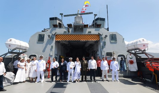 Enseguida se trasladaron a mitad de la bahía, en donde a bordo del buque Guillermo Pietro, depositaron una ofrenda floral en honor de los hombres y mujeres caídos en el cumplimiento de su deber.