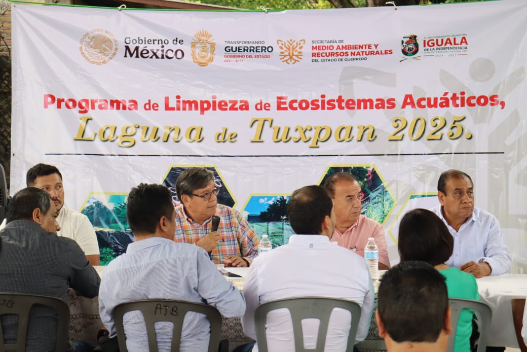 Tuxpan, Gro., 13 de julio de 2025.- Como parte del compromiso con la protección y conservación de los ecosistemas acuáticos en la entidad, el gobierno del estado que preside la gobernadora Evelyn Salgado Pineda, a través la Secretaría de Medio Ambiente y Recursos Naturales del Estado de Guerrero (SEMAREN), continúa realizando acciones en favor de la preservación del ecosistema, por lo cual su titular Ángel Almazán Juárez, se reunió con el Comité de Saneamiento Integral de la Laguna de Tuxpan.