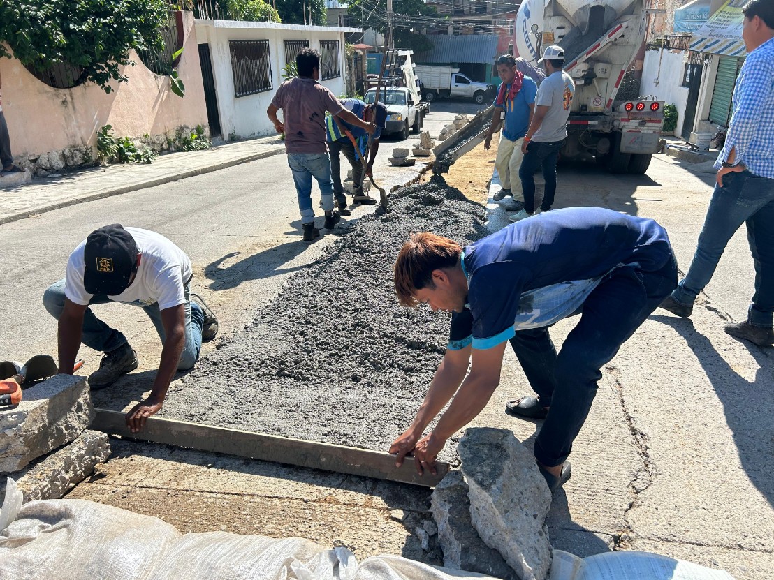 Otra cuadrilla atendió casi de manera simultánea la calle 8 de la colonia Icacos, donde se colocaron 6.5 metros cúbicos de concreto. En el lugar, el presidente de la Asociación de Colonos de Icacos, Hilario Valle Estrada, agradeció a la Presidenta, Abelina López Rodríguez por su respuesta a esta petición.